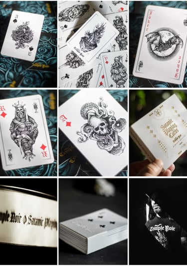 Marc m'en parlait depuis des années : réaliser pour TEMPLE NOIR un jeu de cartes COMPLET illustré avec des visuels 100% dessinés à la main... rien que ça...